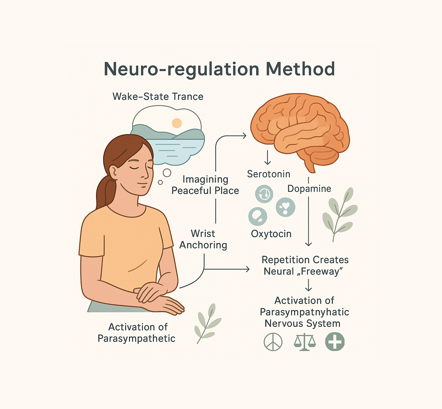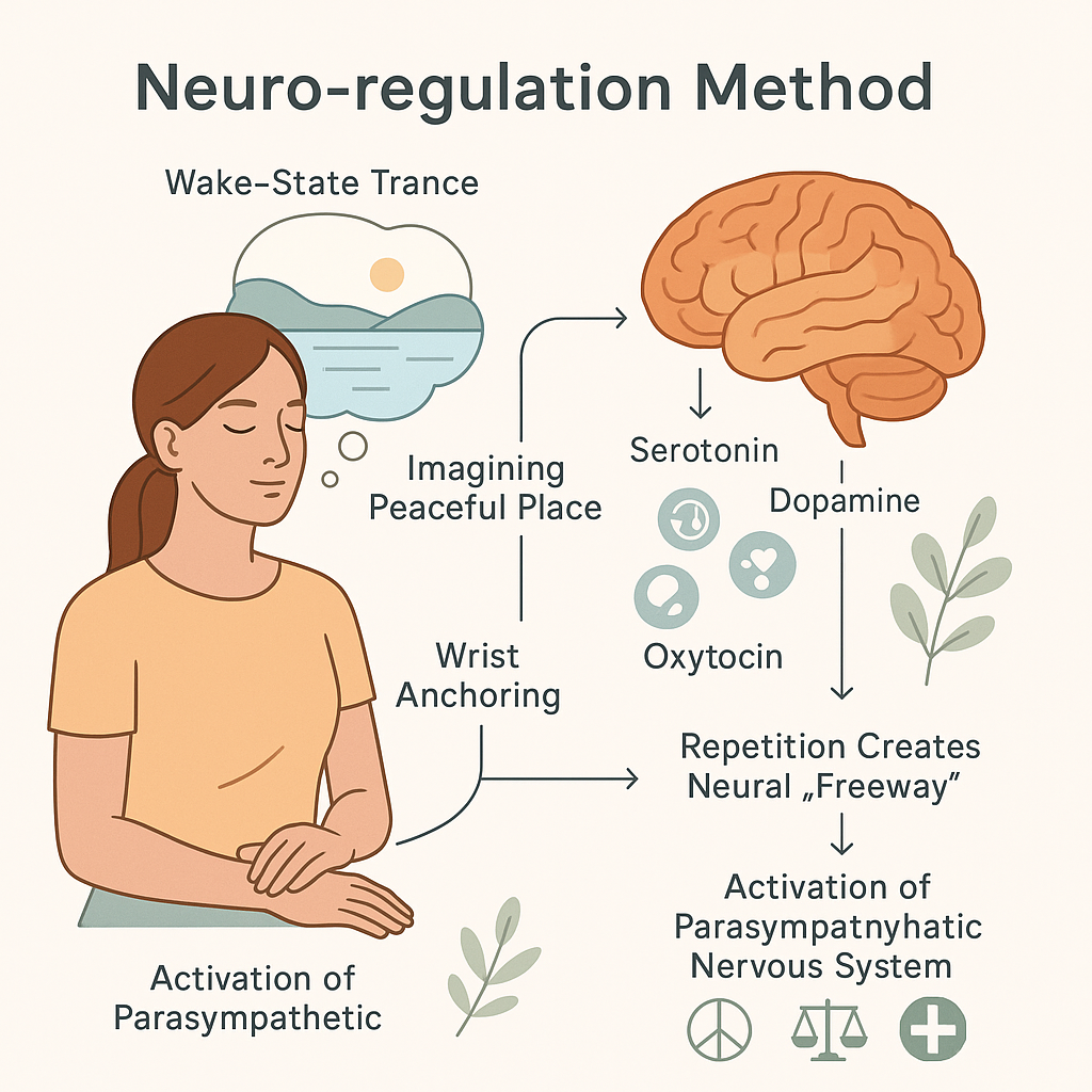 Learn to control your anxiety, pulse., blood pressure and breathing through this NLP technique . You build a neuro pathway to a calm and relaxed state then